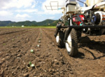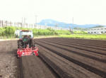 一日で1万本ほどの苗を植えるため、手ではなく野菜苗専用の植付け機械で植えます。
